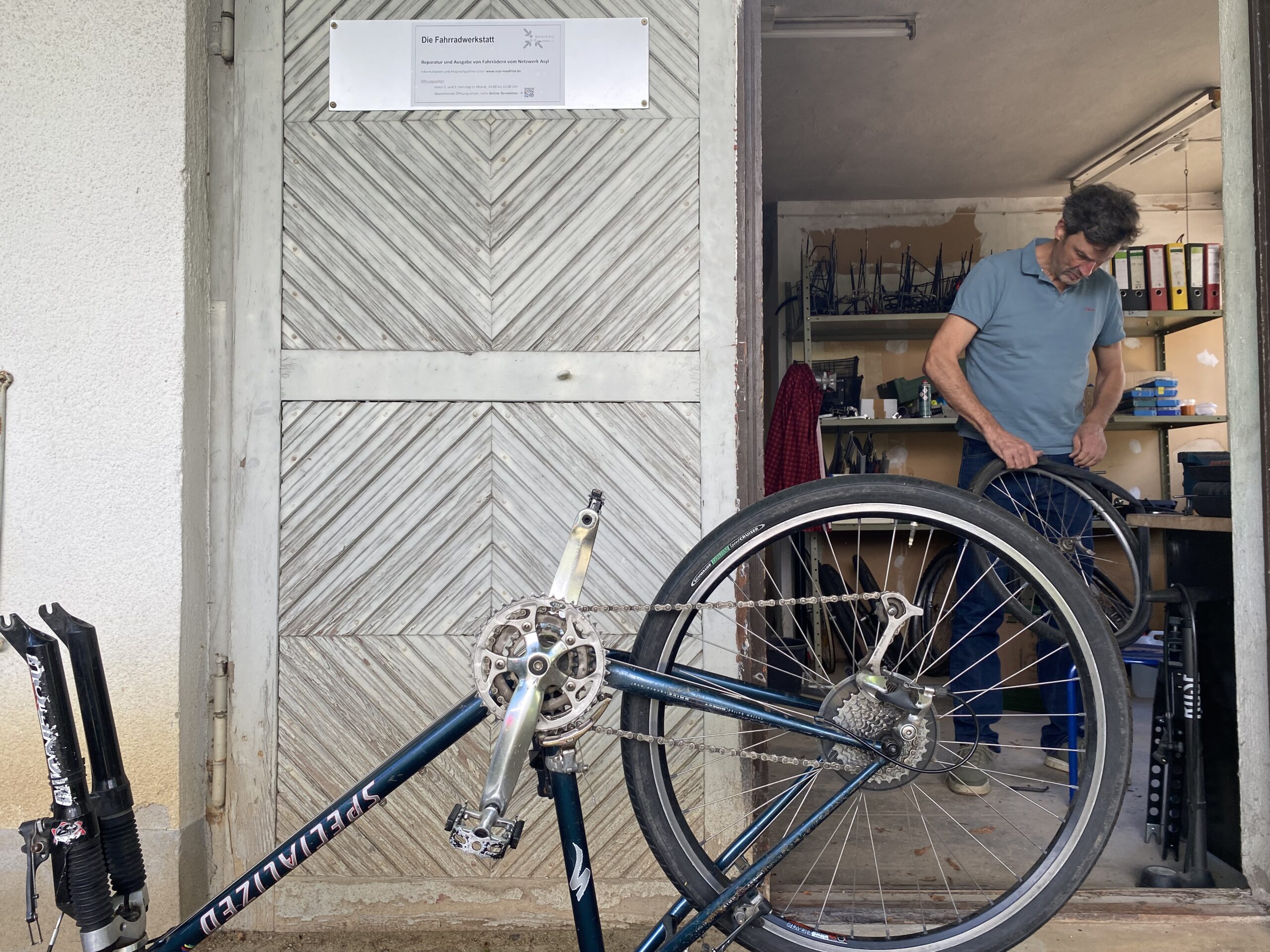 Unsere Fahrradwerkstatt existiert ebenfalls. In neuen Räumlichkeiten mit einem größeren Platzangebot werden nach wie vor gebrauchte Fahrräder und Reparaturdienste angeboten. Die Öffnungszeiten sind an jedem 1. und 3. Samstag im Monat von 14-16 Uhr, können aber auf der Homepage (asyl-muehltal.de) nachgeschaut werden. Neu ist das Angebot, dass auch in Mühltal wohnende Sozialleistungsempfänger kommen können. Dabei sollte der gültige Bescheid vorgelegt werden. Die Fahrradwerkstatt befindet auf dem sogenannten Staudigl-Gelände – Am Trautheim 21.